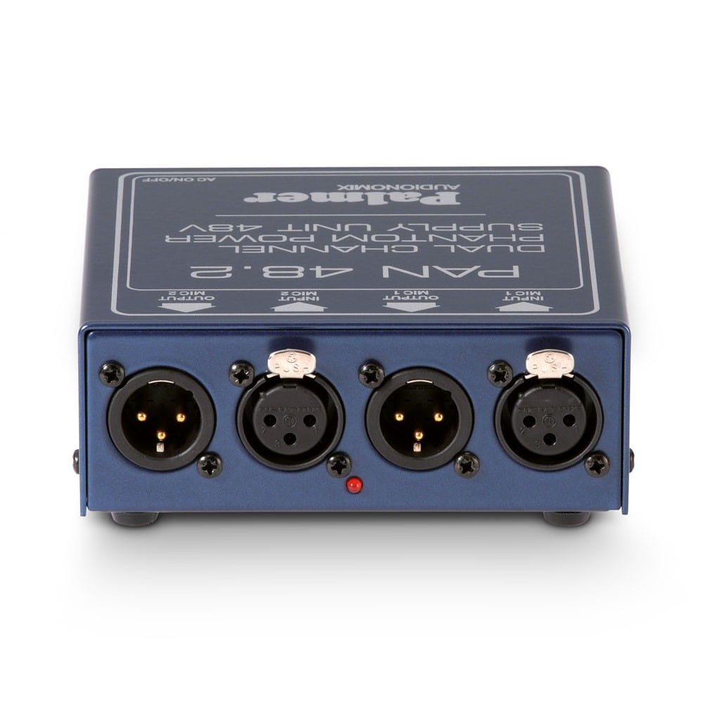 Palmer Pan 48 to urządzenie do zewnętrznego zasilania urządzeń korzystających z zasilania phantom. Dzięki wysokiemu natężeniu prądu na poziomie 20 mA zastosowanie urządzenia nie jest ograniczone jedynie do mikrofonów pojemnościowych. Urządzenie PAN 4 8 jest również idealne na przykład do zasilania aktywnych DI-Boxów zgodnych z zasilaniem phantom. Urządzenie wyposażone zostało w dwa kanały, a za jego zasilanie odpowiada wewnętrzny zasilacz sieciowy. Dane techniczne: 2 kanały, na każdy kanał: wejśc ie mikrofonowe: XLR (żeńskie) ze standardowym zasilaniem 48 V DC. Wyjście: XLR (męskie) bez napięcia DC. Napięcie stabilizowane, niska pulsacja prądu i poziom szumu, maks. tolerancja: 5%, maksymalny prąd całkowity: 20 mA Wskaźnik diodowy LED informuj ący o pracy urządzenia. Mechaniczny przełącznik Ground Lift. Powlekana proszkowo obudowa wykonana z blachy stalowej.